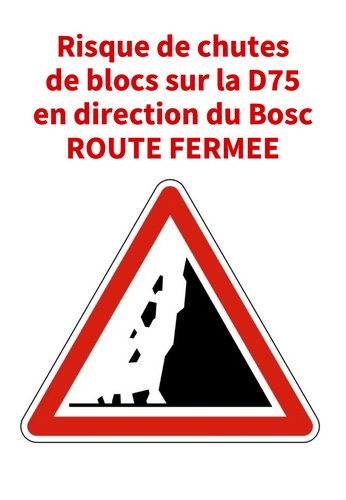 Risque de chutes de blocs sur la D75 en direction du Bosc ROUTE FERMEE